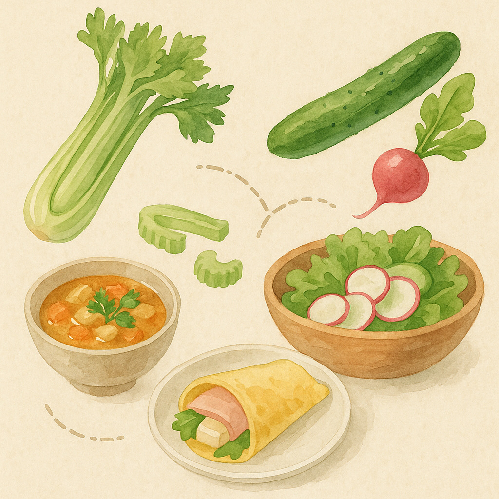 セロリのようなシャキッとした食感を求める場合、大根やきゅうりが代用に適しています。